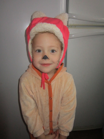 Решила я из нее лисичку сделать! Одела шапочку лисью, костюмчик рыжий, нарисовали носик, усы....и вуаля! Как же ей понравилось! Пол часа у зеркала стояла и не могла налюбоваться на себя! До сих пор ходит и "лисничает", маме глазки строит! Люблю ее!